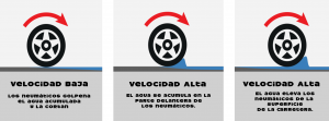 El aquaplaning se debe a la pérdida gradual de contacto de la calzada con la llanta, al encontrarse con una capa de agua que no puede ser desalojada por la misma, por lo cual; al perder la resistencia que otorga el suelo contra el neumático debido a la fricción, el auto pierde adherencia al ser levantado literalmente por la capa de agua, provocando que tu vehículo patine.