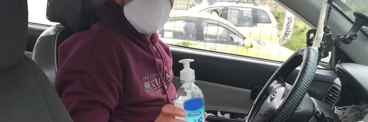 1- Necesitamos un trapo, mójalo con alcohol (que no sea más del 70%), o algún desinfectante, con el cual pasaremos las superficies de mayor contacto, tanto en la zona de alcance del conductor, como de los pasajeros.