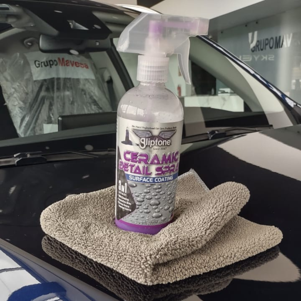 CERAMIC DETAILER 16oz se puede usar como protector primario o como «capa final» para mantener el revestimiento, encerado o pintado de superficies sellantes y su aplicacion debe realizarse con dos microfibras: una al aplicar y otra al pulir.