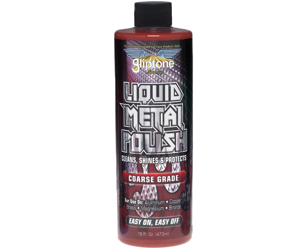 El pulidor para metales de grado abrasivo grueso de GLIPTONE se recomienda para su uso como agente decapante y alisador en metales ásperos muy ozidizados o corroídos sin recubrimiento. Funciona de manera similar al papel de lija líquido, y debe ir seguido del abrillantador de metales abrasivo de grado medio de GLIPTONE o del abrillantador de metales abrasivo de grado ultrafino de GLIPTONE para lograr un brillo brillante. NO lo use en espejos de acero inoxidable, cromo, níquel o cualquier otro material enchapado.